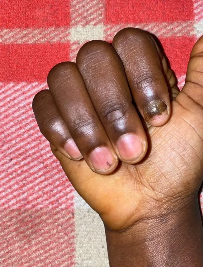 When a nail begins lifting from the nail bed, it usually means the infection has progressed beneath the nail plate.
